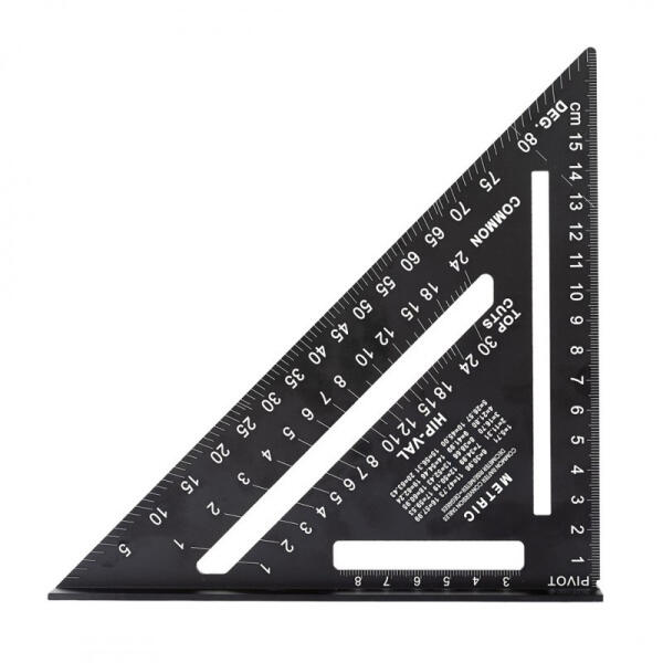 A 45° és 90°-os szögek gyors kimérésére szolgál. Centiméter és col beosztással továbbá speciális szögmérő beosztással is rendelkezik megkönnyítve az ácsok és tetőfedők munkáját. 45° és 90°-os szögek kimérésecm-es és colos skálabeosztásspeciális szögmérő beosztásméretek: 18,3 x 18,3 x 2,2 cmanyag: alumínium