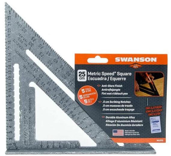 A népszerű Swanson derékszög metrikus jelöléssel. A Swanson Metric Speed Square ácsderékszög ideális segédeszköz ácsipari és asztalosipari munkákhoz. A derékszög használatával gyorsan lehet derékszöget, párhuzamost, szögmet kijelölni. Vágáshoz vezetőként is kíválóan alkalmazható. A Swanson derékszög anyaga alimínium öntvény, mely kellően mereve, nem deformálódik. A derékszögön lévő jelölések mindegyike marva van, ezek a használat során így sosem kopnak le. A derékszög méretei: 25x25x35,5 cm. A termék előnyei